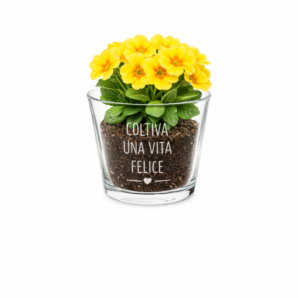 Vaso in vetro per fiori e piante, con scritta “Coltiva una vita felice”, collezione My Home